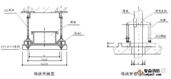 6.封閉插接母線吊裝及穿樓板安裝圖如下: