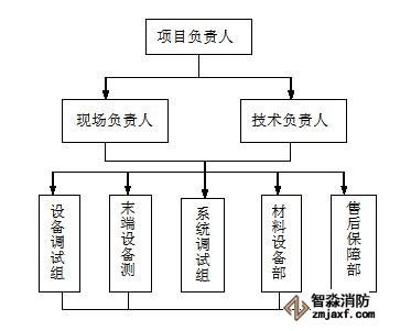 組建工程項目經理部來負責本工程的施工組織和管理工作,其成員為:項目經理、項目工程師、技術負責人、質安員、材料設備員等。