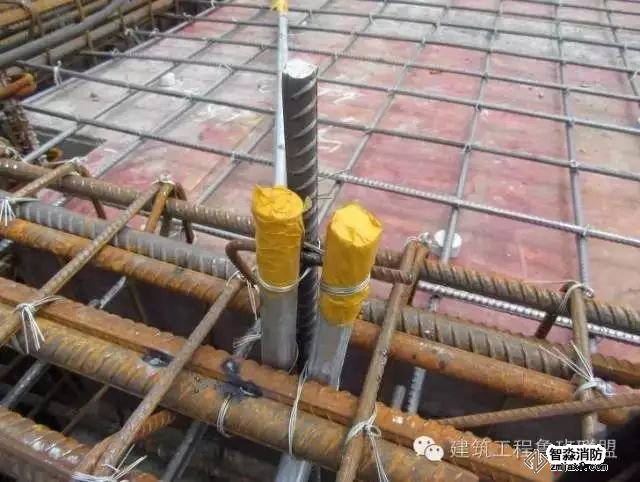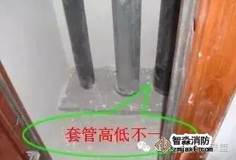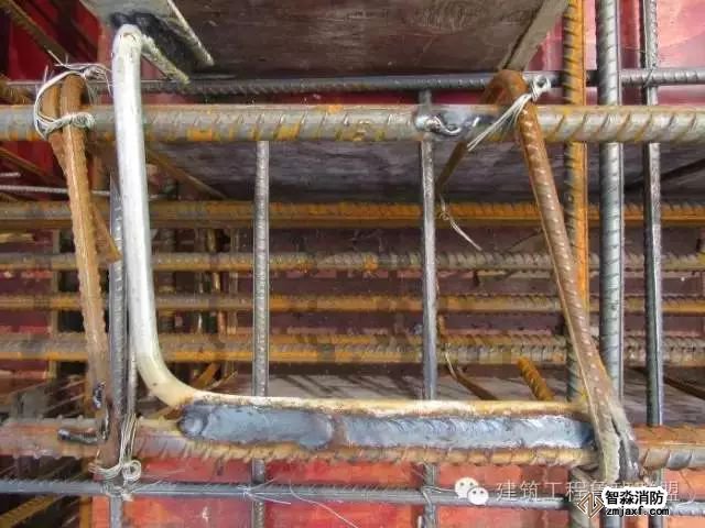 淘汰傳統(tǒng)的預留法如木盒、鐵皮盒、塑料套管,避免跑模、變形等弊端,采用可提式鋼管盒預留法,材料利用廢舊鋼管,制作時,套管高度為250mm,套管管徑比圖紙設計的管徑大兩個等級,在離預留盒上口80mm處焊接一個Φ6圓鋼煨成的提手,以備混凝土達到一定強度后便于拔出,同時在預留盒的底口用鋼板封堵好。 蘇州智淼消防工程安裝公司