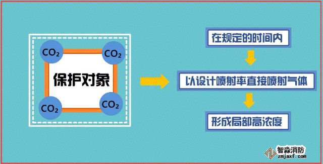 局部應(yīng)用滅火系統(tǒng)指在規(guī)定的時(shí)間內(nèi)向保護(hù)對象以設(shè)計(jì)噴射率直接噴射氣體,在保護(hù)對象周圍形成局部高濃度,并持續(xù)一定時(shí)間的滅火系統(tǒng)。