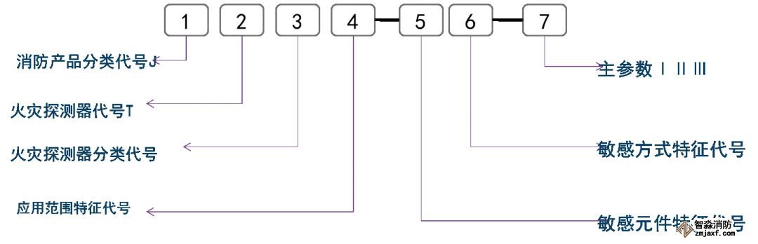 火災(zāi)探測器產(chǎn)品型號編制示例: