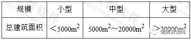 2、商店建筑的規模應按單項建筑內的商店總建筑面積進行劃分,可分為小型、中型和大型商店建筑,并應符合下表規定:(1.0.4)