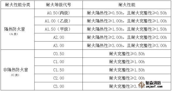 由上表可知,甲、乙、丙三類防火窗均為隔熱防火窗(A類),對應的耐火極限分別為1.5h、1.0h、0.5h。