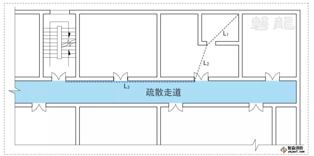 為方便理解,我們按火災危險程度,將室內房間等視為危險區域,疏散走道視為次危險區域,前室和疏散樓梯間視為相對安全區域。疏散路徑的基本確立原則如下: