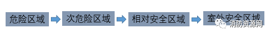 三、廠房倉庫同樣適應“危險區域”→“次危險區域”→“相對安全區域”→“室外安全區域”的基本疏散原則,應確保風險逐級遞減,不應采用嵌套(穿套)設置的方式: