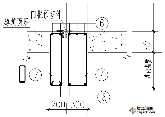 人防墻體鋼筋:豎向鋼筋應(yīng)伸至板頂部,未滿足者,應(yīng)加插倒U形鋼筋,鋼筋規(guī)格同原設(shè)計,長度為搭接長度Lld。