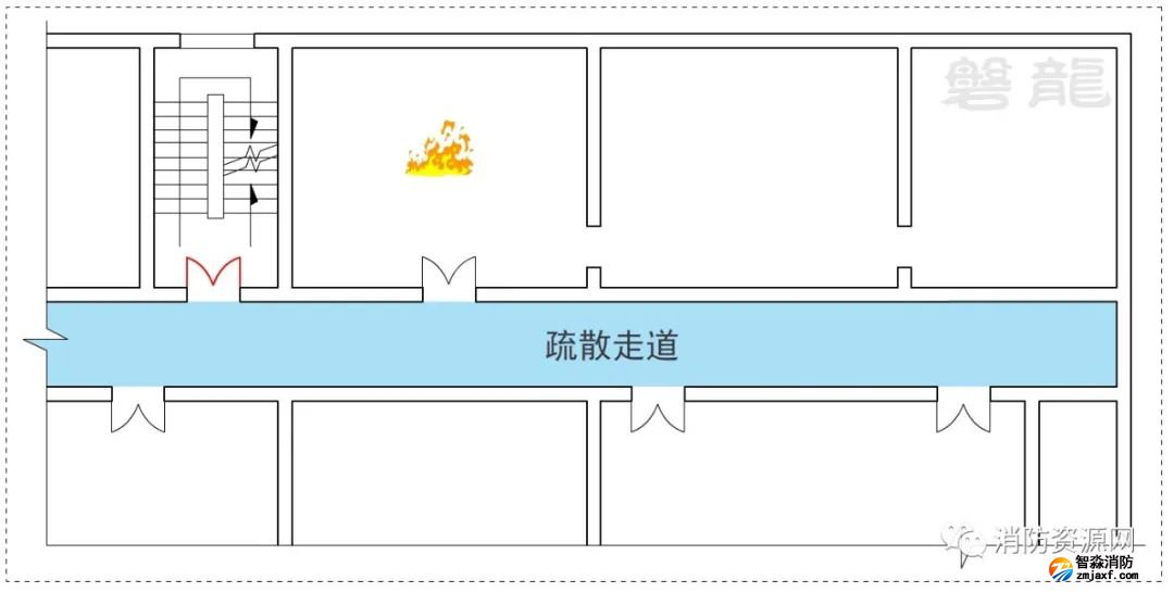 為方便理解,我們按火災危險程度,將室內房間等視為危險區域,疏散走道視為次危險區域,前室和疏散樓梯間視為相對安全區域。疏散路徑的基本確立原則如下: