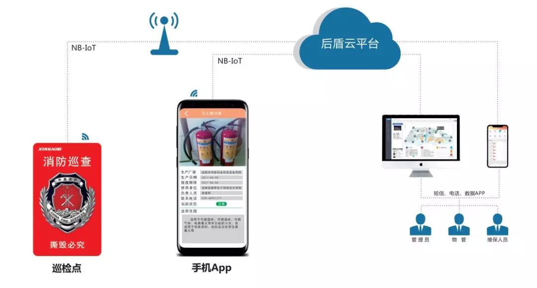 鑫豪斯后盾消防設(shè)備巡檢系統(tǒng)式通過人防手段,采用NFC無源身份ID方式,實(shí)現(xiàn)對(duì)現(xiàn)場(chǎng)無源消防設(shè)備,如:滅火器、消防栓、防火門等,實(shí)現(xiàn)可控的日常檢點(diǎn)、故障檢查、定位的綜合管理平臺(tái)。