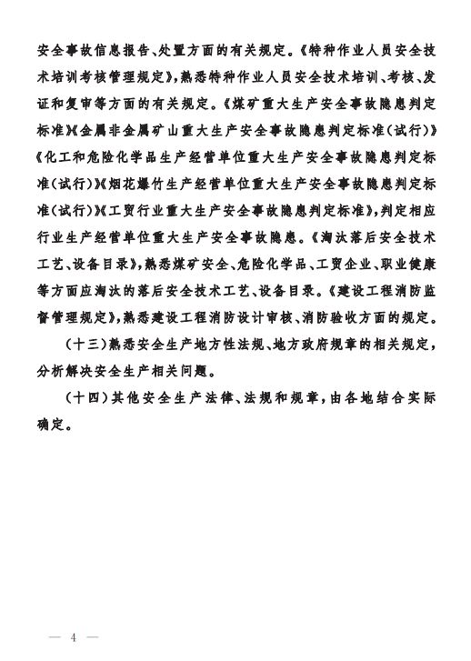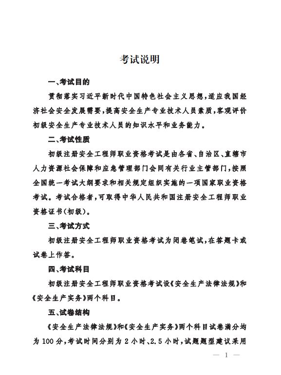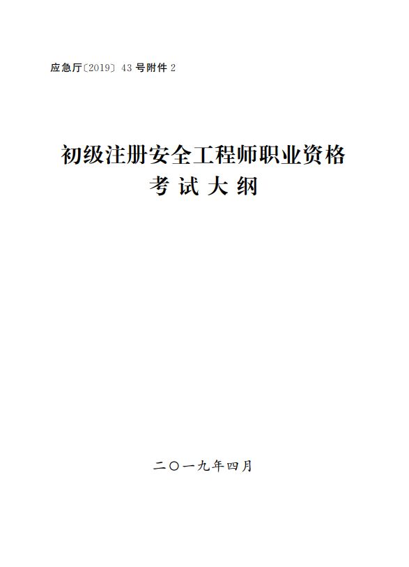 為做好中級、初級注冊安全工程師職業資格考試工作,按照《注冊安全工程師職業資格制度規定》《注冊安全工程師職業資格考試實施辦法》(應急〔2019〕8號)有關要求,應急管理部組織編制了《中級注冊安全工程師職業資格考試大綱》《初級注冊安全工程師職業資格考試大綱》,經商住房和城鄉建設部、交通運輸部同意,人力資源社會保障部審定,現予以印發施行。