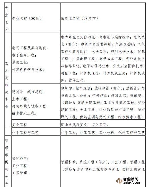 消防工程相關專業新舊對照表