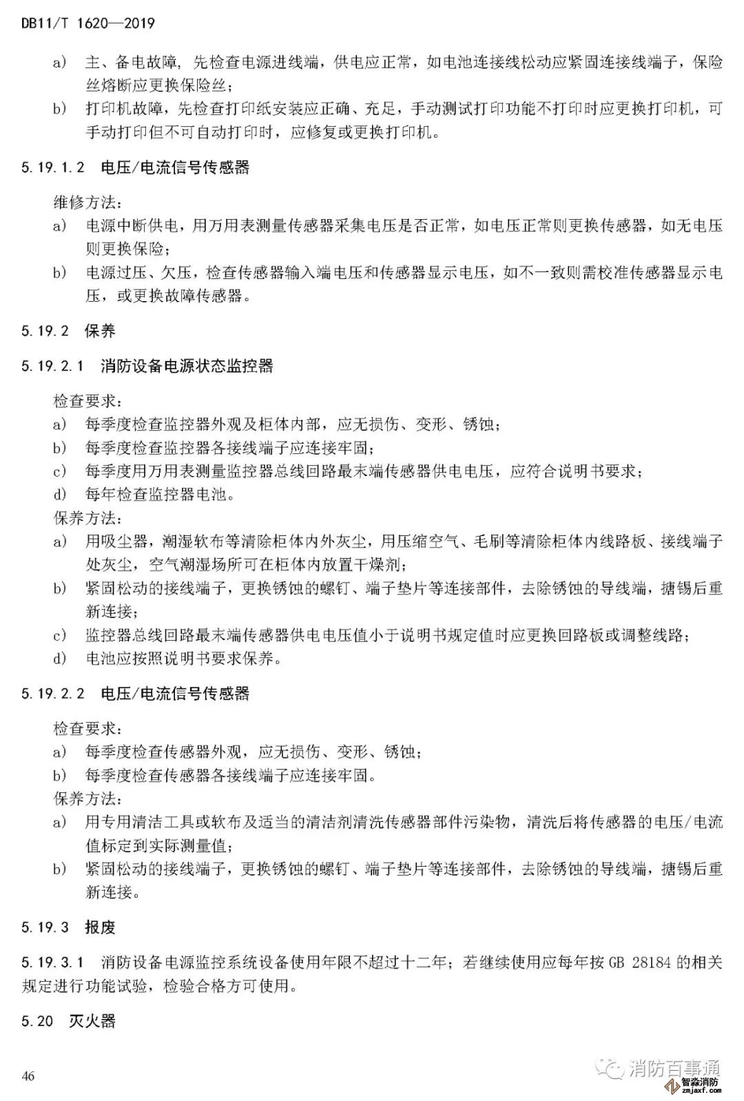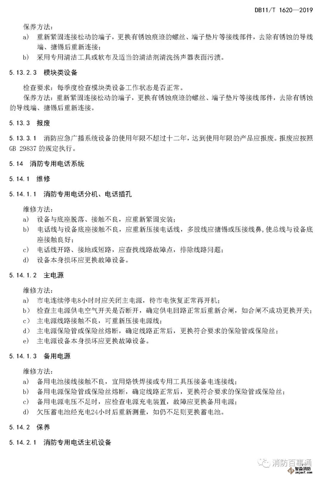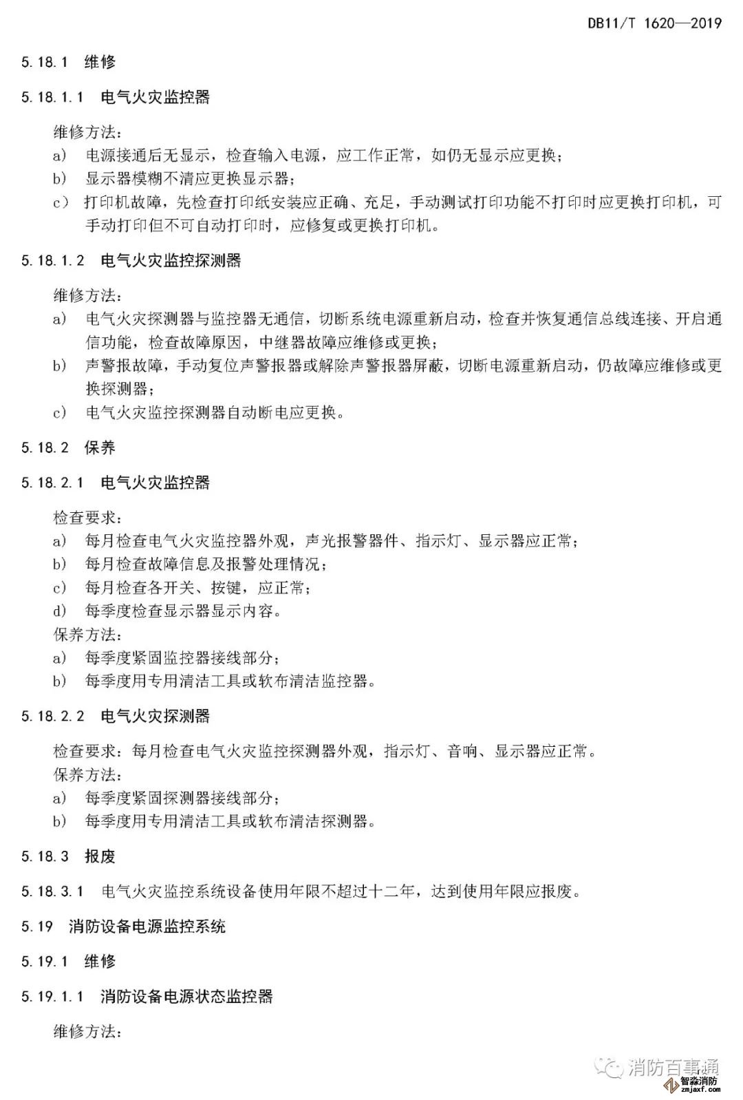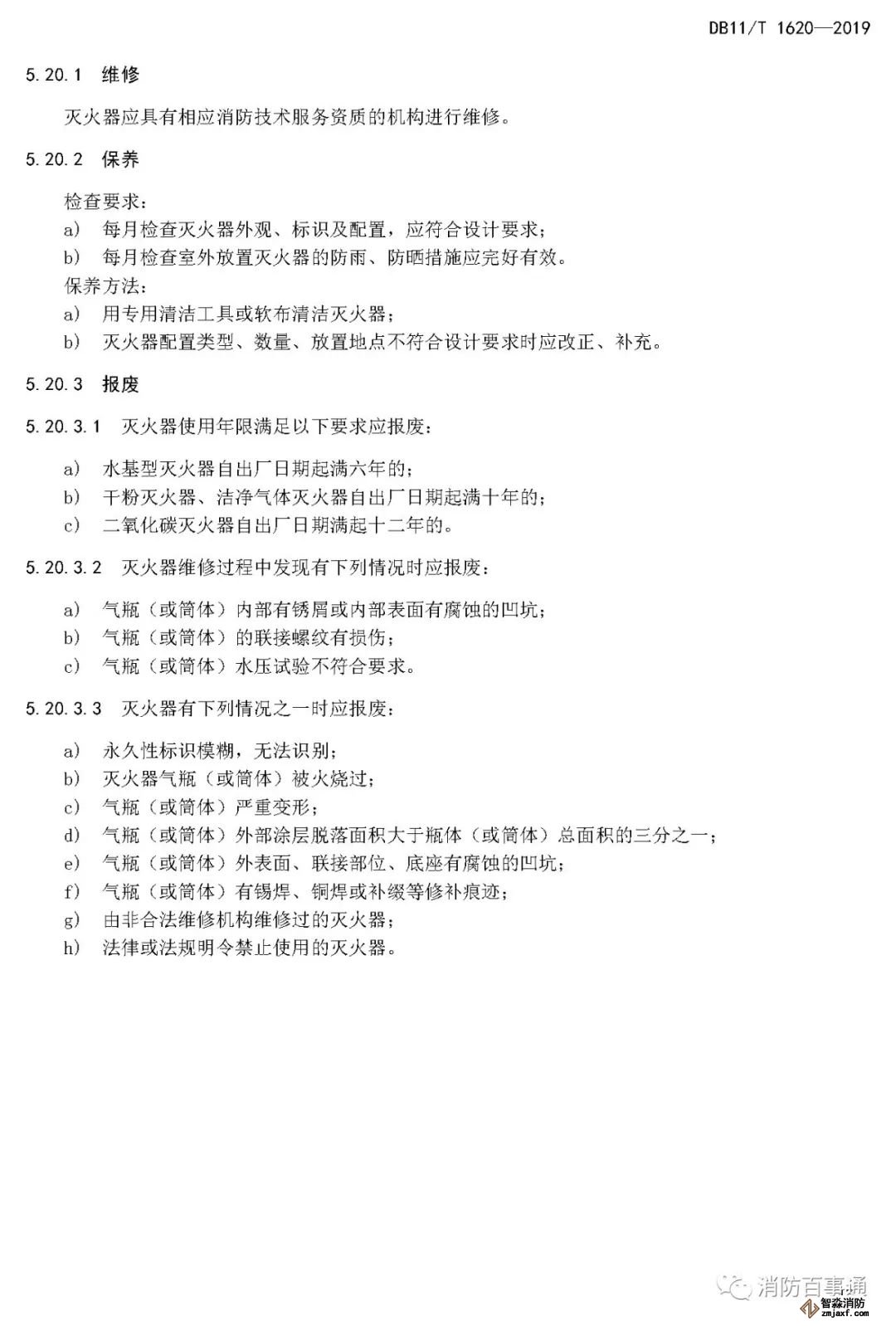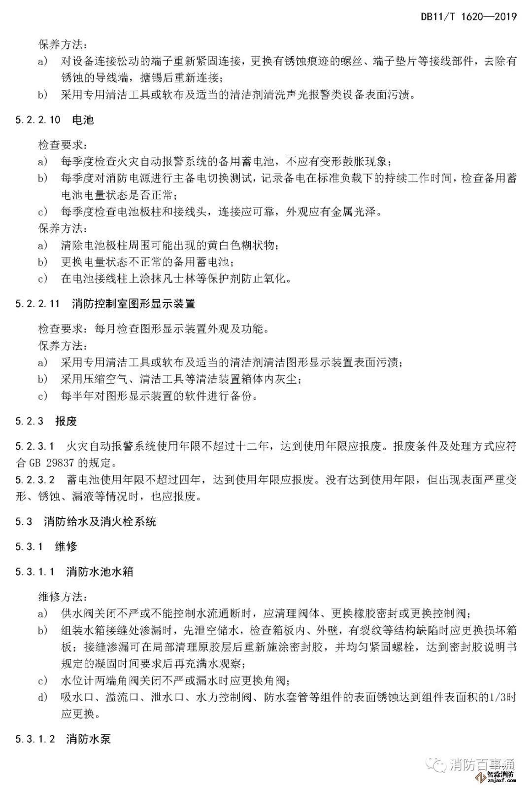 北京市2019年7月1日實(shí)施的DB11/T1620—2019《建筑消防設(shè)施維修保養(yǎng)規(guī)程》,很清楚的規(guī)定了一些消防設(shè)備/器材的具體報(bào)廢年限。