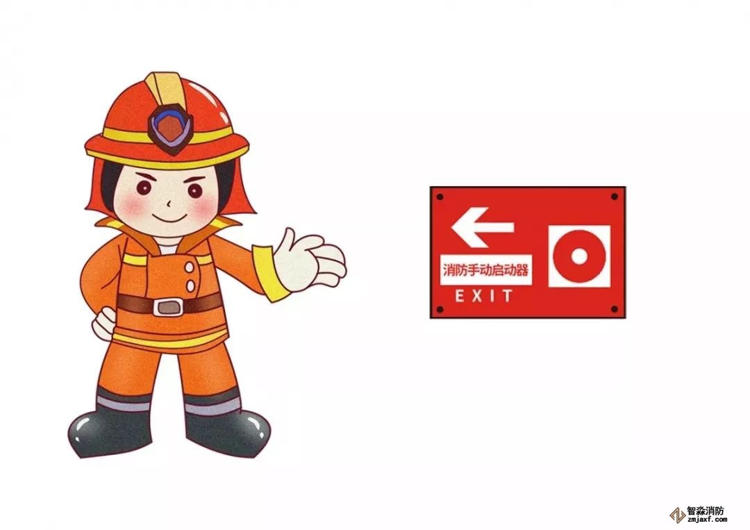 手動(dòng)火災(zāi)報(bào)警按鈕和固定滅火系統(tǒng)的手動(dòng)啟動(dòng)器等裝置附近必須設(shè)置“消防手動(dòng)啟動(dòng)器”標(biāo)志。萬一發(fā)生災(zāi)情,大家可立即尋找消防手動(dòng)啟動(dòng)器。