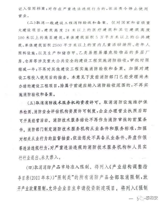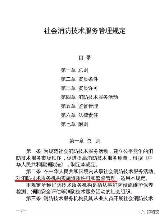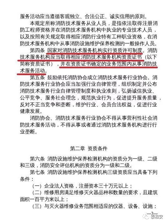 “ 取消消防設(shè)施維護(hù)保養(yǎng)檢測(cè)、消防安全評(píng)估機(jī)構(gòu)資質(zhì)許可制度,企業(yè)辦理營(yíng)業(yè)執(zhí)照后即可開(kāi)展經(jīng)營(yíng)活動(dòng)。”這是征求意見(jiàn)稿非常重要的一條。