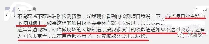 有的人認(rèn)為,取消機(jī)構(gòu)的資質(zhì)許可,誰(shuí)都可以干消防,在今天這個(gè)情況下,那很可能造成更多的安全隱患。不是什么樣的機(jī)構(gòu)都可以干消防檢測(cè)或維護(hù)保養(yǎng)的,這是一個(gè)專業(yè)的事情,還是需要一定的條件的。征求意見(jiàn)稿提出"......依法懲處不具備從業(yè)條件、弄虛作假的違法違規(guī)行為,對(duì)嚴(yán)重違法違規(guī)的消防技術(shù)服務(wù)機(jī)構(gòu)和人員實(shí)行行業(yè)退出、永久禁入......"