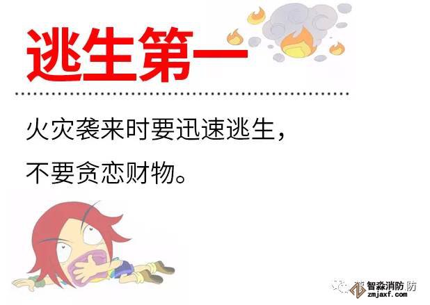 1、火災襲來時要迅速逃生,不要貪戀財物,不要貪戀財物,不要貪戀財物!PS:重要的事情說三遍!