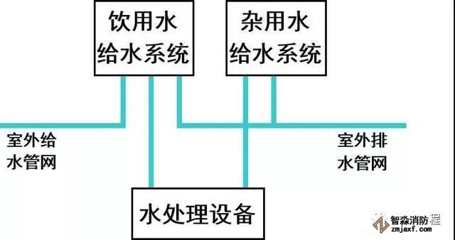 根據(jù)不同用途所需的不同水質(zhì),設(shè)置獨立的給水系統(tǒng)的建筑供水 。