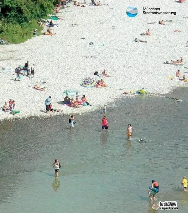 像照片中的那樣,每逢夏天,河邊是市民最愛的去除之一。曬太陽,燒烤,游泳。等等。但你能夠想象么,如此清澈的河水,有相當一部分也是來自于慕尼黑城每天所排進去的生活污水,工業廢水和包括落在地面的雨水。有容乃大的Isar河海涵了這些“污水”而依然美麗的功勞歸功于慕尼黑出色的市政排水系統和它背后的那個管理機構——Münchner Stadtentw?sserung。