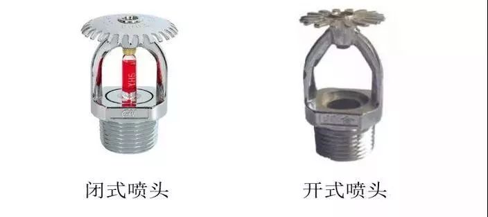 2、 自動噴水滅火系統根據噴頭的不同可以分為兩類,使用閉式噴頭(注意噴頭中間的紅色玻璃管)就是閉式系統,使用開式噴頭的為開式系統。其中閉式系統包括濕式系統、干式系統和預作用系統;開式系統包括雨淋系統、水幕系統。