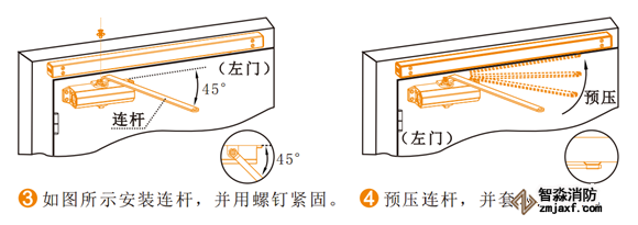 4) 確定好電動閉門器的安裝方向(拉門側或推門側)安裝閉門器滑槽及液壓缸;